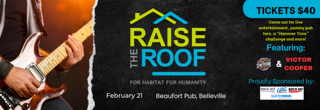 Habitat for Humanity Prince Edward-Hastings invites you to join our first annual Raise the Roof Night at Beaufort Pub! Enjoy some great food, great music, door prizes, and fun games!